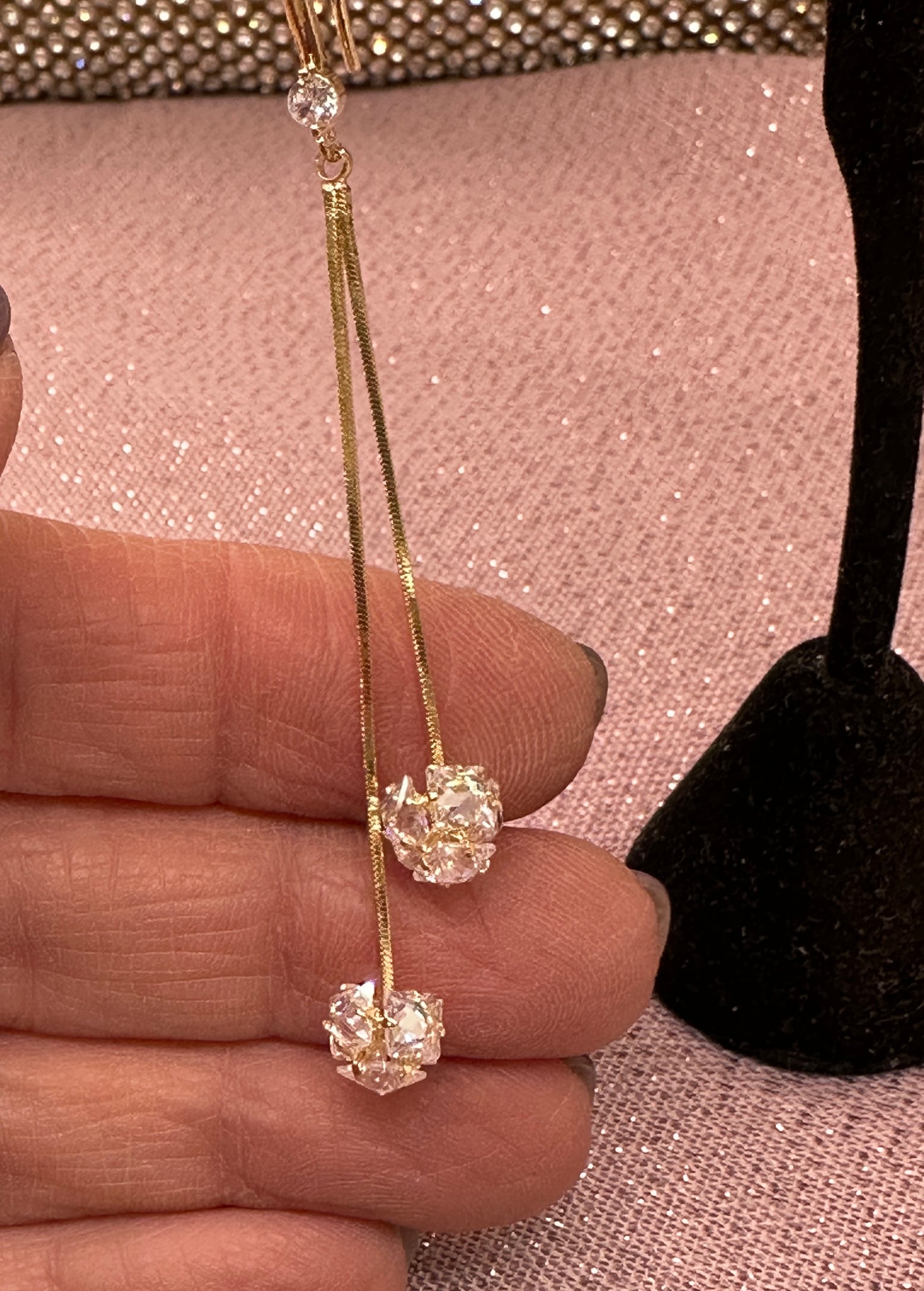 These understated earrings feature a little crystal ball on the ends.