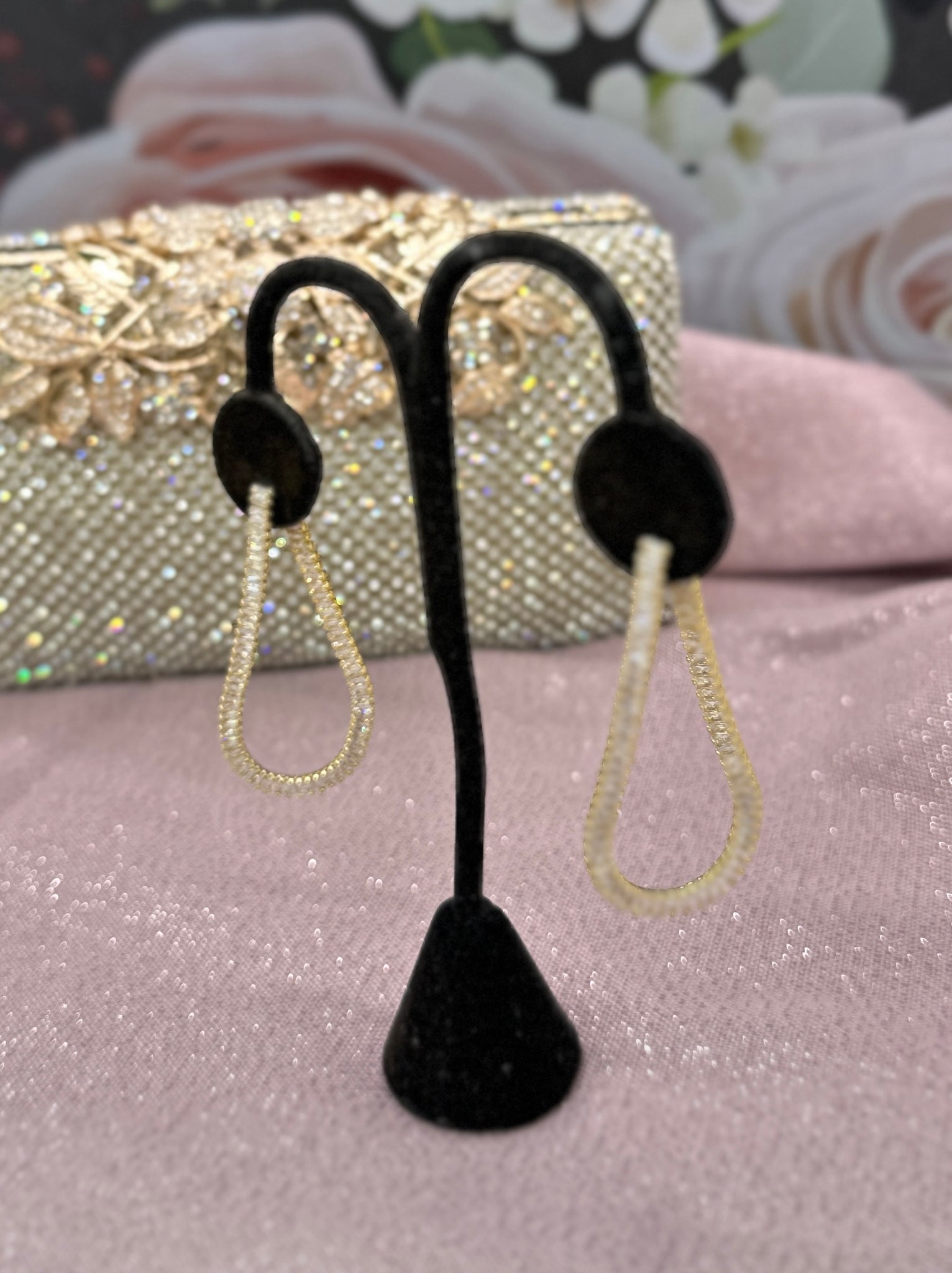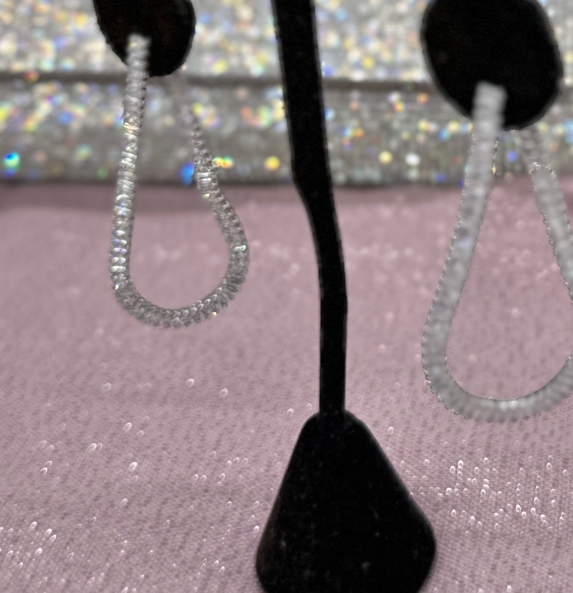 The diamonds never end. Never lose your earring backs again. The back of this earring closes to the front.